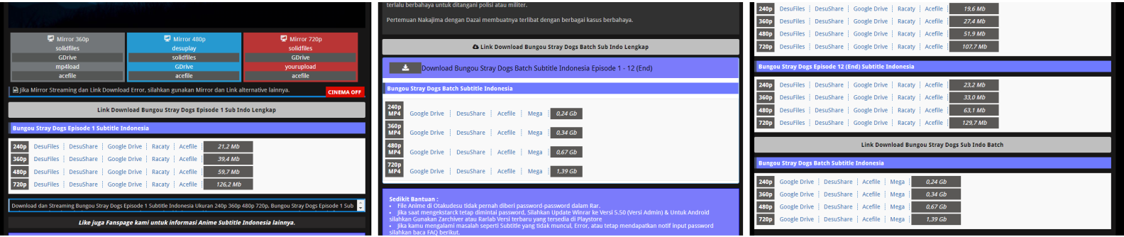 Pilih anime yang akan kalian download, disini tidak hanya menyediakan 1 link download saja, jadi jika ada beberapa link yang lain error, kalian bisa menggunakan link alternative lainnya.